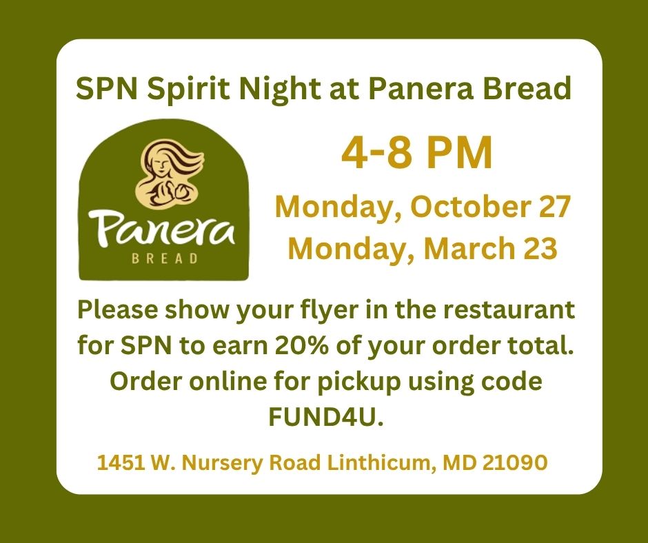 Please join us for this Spirit Night at Panera Bread from 4-8 PM.
