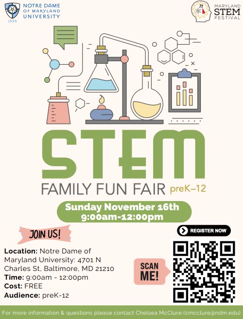 Please join in the fun at the STEM Family Fun Day presented by the Maryland Festival at Notre Dame of Maryland University.